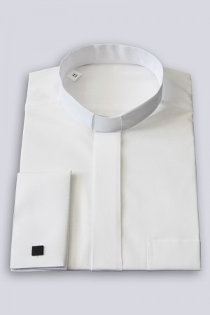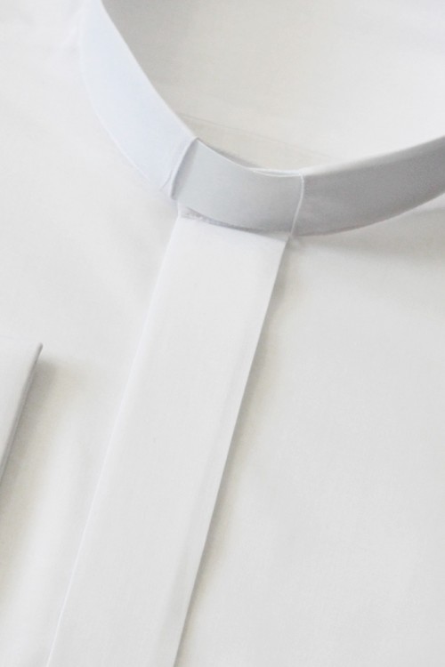 Camisa cómoda para curas de color blanco. Modelo elegante de corte clásico, con túnel para alzacuello. Disponible con manga larga y corta. Producto polaco hecho de tela de alta calidad.