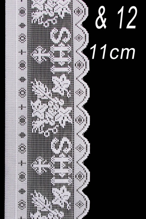 Productos que ofrecemos se fabrican en Polonia. Son unos proyectos patentados que se crearon en nuestro taller y están protegidos por derechos de autor. Nuestro objetivo era crear motivos únicos con símbolos litúrgicos hermosos que se convertirían en una decoración encantadora de sobrepellices, albas o manteles. Ofrecemos encaje de 11cm de ancho. Longitud máxima que podemos ofrecer es 15 metros.