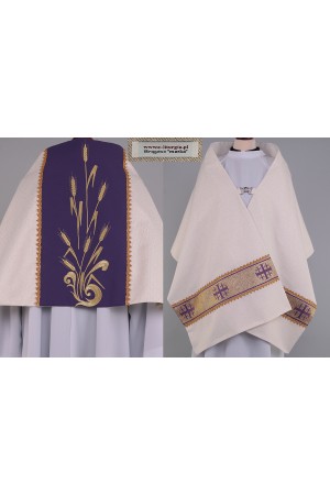 Velos humerales excepcionalmente festivos son puestos por sacerdotes y diáconos durante la entrega de la Sagrada Comunión a los feligreses. Para poder cumplir con su tarea - portar la Custodia - estos paños de hombros tienen bolsillos internos adicionales. Para garantizar la máxima comodidad de uso, cosemos la parte inferior de cada velo de gabardina. Están decorados con ricos bordados. Varias versiones de color para elegir.