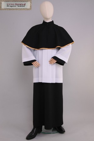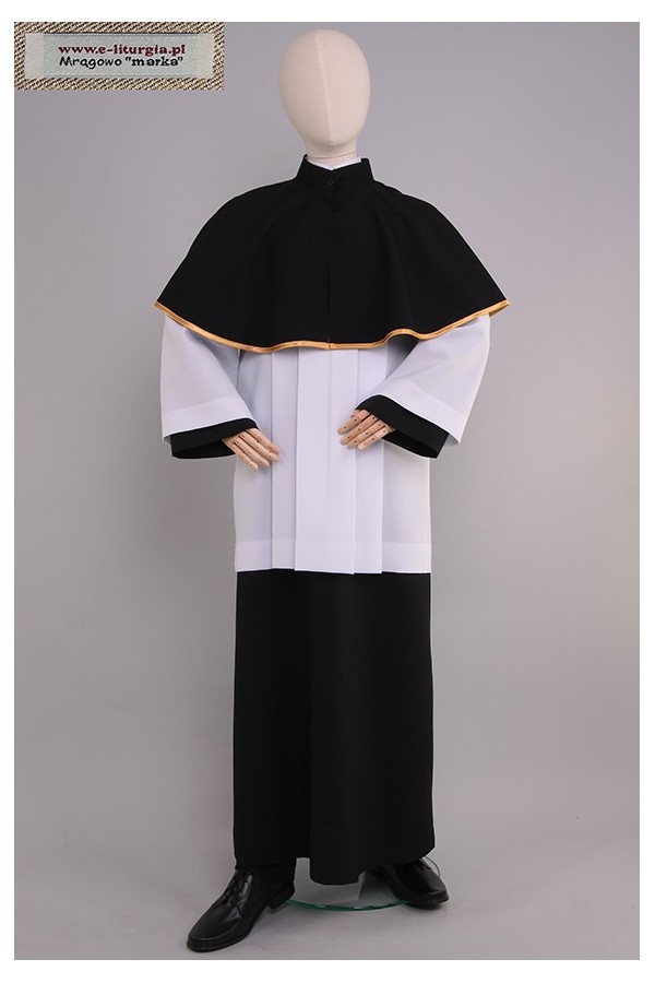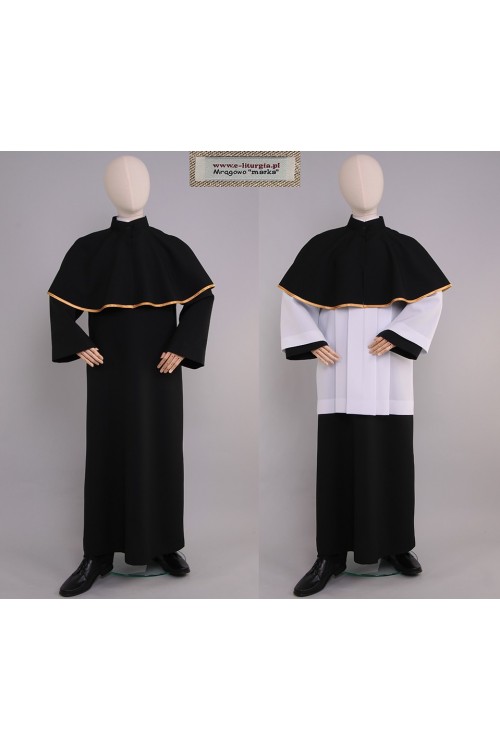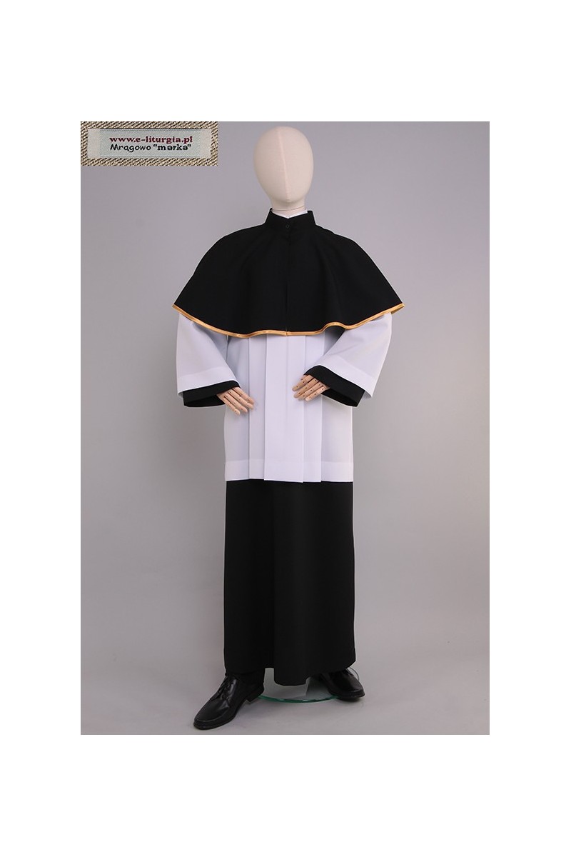 Vestimenta hecha con mimo dedicada a monaguillos y lectores - alba con cuello de tela ligera y fresca de algodón con viscosa o de poliéster duradero. Alba negra con cuello es una prenda perfecta para celebrar la Eucaristía y da dignidad al servicio del altar. Alba de corte simple está ligeramente acampanada en la parte inferior y se abrocha en la parte trasera.